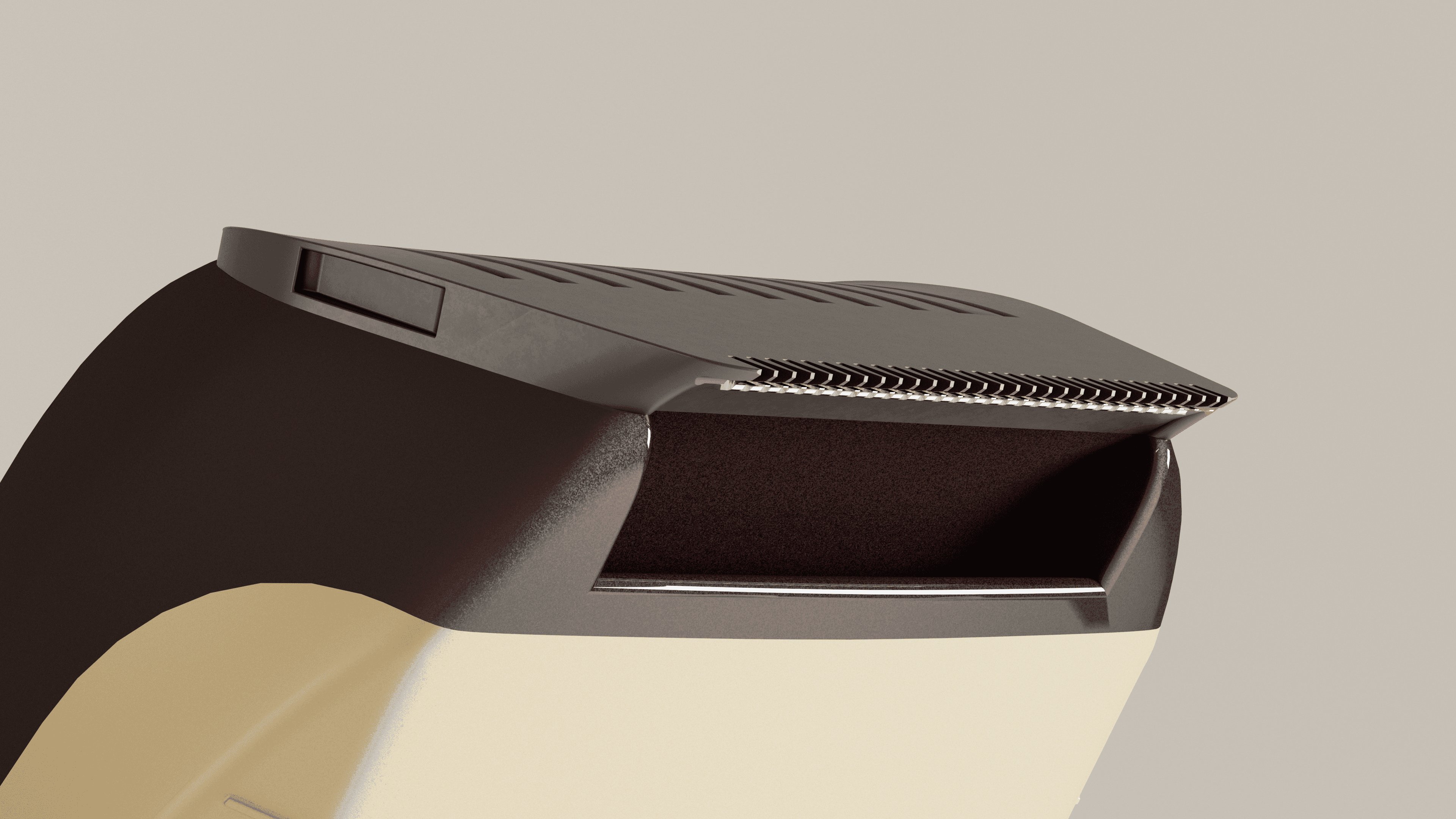 A new way to trim with zero mess. Inspired by the frustration of rushing to trim a beard without time for post-trim cleanup, this vacuum trimmer reimagines the grooming experience. It captures hair as it cuts, leaving your sink spotless and your routine uninterrupted. While vacuum trimmers exist, they remain largely unknown and underutilized. This design focuses on making the tool desirable, functional, and beneficial for the everyday user—combining sleek aesthetics with powerful suction technology to deliver a cleaner, faster, and more enjoyable grooming process.